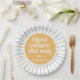 Boho Voici les assiettes de fête Son baby shower en bleu et jaune.