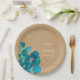 De fraîches feuilles d'eucalyptus de la forêt encadrent vos noms et date spéciale dans un texte élégant et classique, sur cette assiette en papier à thème de mariage champêtre rustique kraft. Conçu par Thisisnotme©