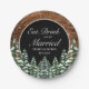 Manger, boire et être marié assiette en papier de mariage. Bois marron rustique, fond enneigé et forêt enneigée. Style campagnard vintage cosy. Plus d'articles sont disponibles dans ce style dans notre magasin. Vous pouvez modifier le design davantage, changer les couleurs, les polices et ajouter du texte en cliquant sur le lien "personnaliser davantage".