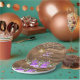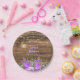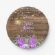 Assiettes En Carton Bois, lanternes et fleurs violettes