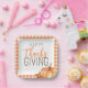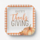 Cette simple plaque en papier Thanksgiving est ornée d'un citrouille d'aquarelle et d'un feuillage de feuilles d'automne avec une bordure motif en plaid orange.