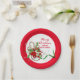 Disposez une table de vacances festive avec cette assiette en papier Joyeux Noël. Cette assiette présente un design de canne de bonbon et de fleur de poinsettia rouge. Il y a un espace pour votre vœu de vacances et le nom de votre famille. Cette assiette en papier complètera magnifiquement une palette de couleurs de Noël classique rouge et vert.