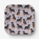 Les chiens mignons Rottweiler s'assoient et se tiennent avec des manteaux noirs et bronzés avec des os de chien éparpillés et des motifs de pawprints.