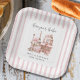 Pour le couple qui attend une petite fille. Aquarelle "Bonjour Bebé" Café Paris/pâtisserie design baby shower papier assiette. La plaque peut être personnalisée avec l'inclusion de votre choix de texte qui apparaîtra en bas. Conservez le texte de conception de "BABY SHOWER" tel quel ou modifiez-le et incluez votre propre choix de texte au-dessus.