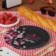 Conçu sur la base de mon illustration d'une belle dame blonde portant une superbe robe de cocktail classique et élégante rose roses, porte de belles chaussures en stiletto noir. Le design est parsemé de coeurs arrière - plans - un style chic et moderne. Personnalisable avec votre propre texte pour un design personnalisé le jour de votre anniversaire.