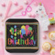 Joyeuse fête d'anniversaire colorée, design décoratif avec ballons de fête et étoiles.