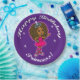 Joli dessin animé d'une fille afro-américaine en rose avec une tiara bijoux avec les mots : Bonne princesse d'anniversaire ! Customisez la fête d'anniversaire de votre fille avec nos plaques en papier.