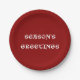 Plaques en papier de taille rouge foncé avec "Bonnes Fêtes" dans une police blanche et enneigée.