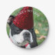 Un terrier de Boston avec un casquette rouge de partie dessus.