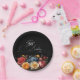 Assiettes En Carton Botanique Floral Noir Joyeux Anniversaire