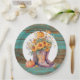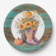 Belle plaque en bois turquoise rustique d'automne avec bottes de cowboy à fleurs et citrouilles.