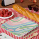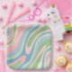 Boucles ondulantes Retro Motif Abstrait Pastel bleu rose vert. Trippy 60s y2k psychédélique design esthétique pastel danois. Art unique artsy cool contemporain tendance boho ondulé chaîne super tourbillon ; couleurs douces avec une ambiance apaisante et joyeuse. Par Kierkegaard Design Studio.