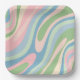 Assiettes En Carton Boucles ondulées Motif Abstrait rétro Pastel bleu