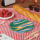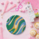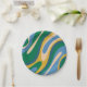 Assiettes En Carton Boucles ondulées Retro Abstrait Motif bleu vert