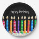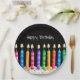 Rangée de bougies d'anniversaire éclairées dans le glaçage de gâteau avec des arroses sur l'arrière - plan noir. La couleur Arrière - plan peut être modifiée.