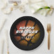 Plaque de papier Metallic Orange Basketball Ball Anniversaire. Plaques d'anniversaire de basket modernes pour quiconque aime le basket-ball. Personnalisez avec votre nom et votre texte.