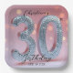 Faites briller votre célébration de jalon avec ces plaques personnalisées de papier de 30e anniversaire. Un 30 audacieux et tridimensionnel, recouvert d'une texture de boule disco chatoyante, prend le devant de la scène face à un arrière - plan rêveur, rose roux, parsemé de lumières de boule dorée. Le design est personnalisé avec le nom et la date dans un élégant script noir, créant un accessoire de fête éblouissant et unique.