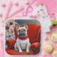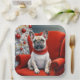 Assiettes En Carton Bouledogue français de Noël sur une chaise rouge