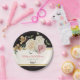 Ces assiettes en papier chic et modernes présentent un bouquet floral coloré sur le dessus sur fond noir. Le bouquet comporte de magnifiques roses en couleur crème, ivoire et rose, avec des lys péruviens orange et un feuillage vert. Sous le bouquet se trouve une zone de couleur ivoire pour votre texte personnalisé. Il y a deux bandes dorées simulées qui traversent la largeur des assiettes. Les mots "Melissa's Bridal Shower" sont imprimés en rose corail avec la date de l'événement en vert sauge et le mot "Enjoy" en noir en dessous. Envoyez un courriel à niteowlstudio@gmail.com si vous avez besoin d'articles assortis ou si vous avez besoin d'aide pour personnaliser le texte.