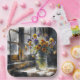 Assiettes En Carton Bouquet de sansy dans une fenêtre impressionnisme
