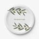 Assiettes en papier avec des branches d'olivier aquarelle et un texte personnalisable : parfait pour un mariage ou un dîner de famille. Cela pourrait également être utilisé pour une entreprise de catering, dans un restaurant méditerranéen !