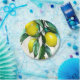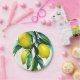 Ces plaques en papier coloré présentent de beaux citrons d'aquarelle jaune sur une branche de citronnier aux feuilles verts bleus.