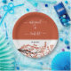 Branche en terre cuite avec plaque en papier mariage de fleurs de pêche foncé. La partie supérieure est recouverte d'une bande de terre cuite et de vos noms en typographie de script tandis que la partie inférieure est de couleur blanche avec une branche en terre cuite et noire avec des fleurs de pêche foncées.