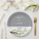 Assiettes En Carton Branche grise avec fleurs jaunes, initiales mariag