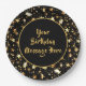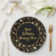 Assiettes En Carton Brosse d'anniversaire Script Black Gold Stars Pers