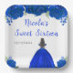 Cette plaque de sweet sixteen présente des fleurs florales bleu royal en parties scintillant imitation et une belle princesse aux cheveux bruns et une robe élégante. C'est parfait pour une fête d'anniversaire en sweet sixteen.