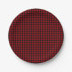 Assiettes en papier plaid buffalo avec motif à carreaux rouges et noirs. Vous pouvez facilement personnaliser ces assiettes en papier plaid buffalo de cabane rustique boho en ajoutant le texte de votre choix.