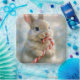 Adorable watercolor rabbit happily nibbling on a festive Christmas candy cane