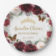Assiettes En Carton Burgundy Blush Floral Quinceañera Crown Butterfly