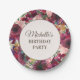 Plaques de papier d'anniversaire fleurie bordeaux et rose vif personnalisées. Ces assiettes appartiennent à notre collection florale d'anniversaire de Bourgogne et rose. Contactez-nous pour obtenir de l'aide sur la personnalisation ou pour demander des produits correspondants.