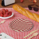 art numérique Abstrait de rayures rouge bordeaux et crème