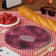 Assiettes en papier de mariage à texture métallique rouge burgundy conçues pour être personnalisées rapidement et facilement selon les spécificités de votre événement.
