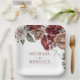 Elegant burgundy floral theme wedding paper plates featuring beautiful flowers.