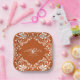 The wedding paper plate features a beautiful watercolor artwork of a white floral frame on a warm, earthy orange background. The wording, including "Mr. & Mrs.," can be easily customized. Personalizing the plate with the couple’s last name and their special date adds a personal touch to any dining table. Ideal for a romantic shabby chic, elegant vintage, or modern bohemian-style fall wedding, as well as weddings throughout the year.