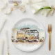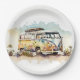 Assiettes En Carton Bus Hippie Rétro Aquarelle Avec Fleurs