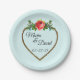 Assiettes En Carton Cadre Coeur avec Rose Aquarelle