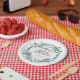 Éléments : peinture à l'aquarelle, cadre plein, verdure, feuilles, eucalyptus, typographie serif. Couleurs : vert, bleu, sauge, menthe, aigue et blanc avec typographie noir chaud. Thèmes : jardin, nature, botanique, romantique, extérieur, fantaisiste, feuillage, léger et lumineux, vintage, élégant. Collection : Ensemble de mariage de mariage eucalyptus verdure cadre vert bleu blanc. Type de produit : Assiettes