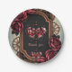 Assiettes En Carton Cadre Steampunk avec Roses rouges et Engrenages
