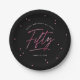 Calligraphie rose-noir moderne 50th Birthday Paper Plates présente une dispersion amusante de confettis en faux feuille d'or et de calligraphie moderne.
