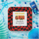 Rétro Cute Sound the Alarm Fire Truck Wavy À damiers plaque papier d'anniversaire. Objets correspondants dans notre boutique pour un thème de fête complet.