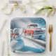 Assiettes En Carton Camion Red Retro de Noël avec Snowman