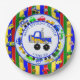 Personnalisé Bleu, vert, jaune, rouge voitures, tracteurs, camions et plaques de papier pour la fête d'anniversaire du garçon.