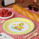 Assiettes En Carton Canard à fleurs sur jaune et blanc