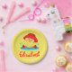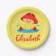 Un mignon arrière - plan à pois jaune et blanc, il y a un mignon canard qui joue dans une flaque d'eau. Il y a un modèle pour insérer un nom en bas. Commandez vos plaques de papier dès aujourd'hui ! Pois et canards créés par : AMBillustrations http://www.etsy.com/shop/AMBillustrations/