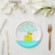 Plaques de baby shower créatives, avec illustration d'adorable canard avec parapluie à points de polka.