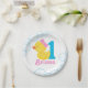 White Girl Rubber Duck Personnalisé Plaques de papier d'anniversaire, personnalisez avec votre nom et votre âge! Disponible en ronde ou en carré.